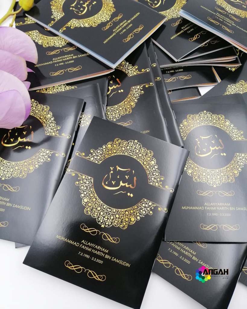 Untuk tempahan buku yasin custom, anda boleh terus click di sini atau whatsapp kami di 0192520041, atau terus ke showroom kami dengan waze: Angah Doorgift And Printing Sdn Bhd.