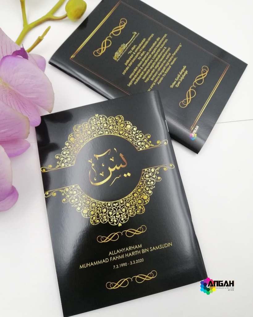 Buku yasin custom kami dilengkapi dengan Surah Yasin, Doa Yasin, Tahlil Ringkas, Doa Selamat, Doa Akhir Tahun Hijriah, Doa Awal Tahun Hijriah, Amalan Zikir Harian, Solat Jamak, Solat Qasar, Asma’ul Husna, Panduan Solat Jenazan dan pelbagai lagi content yang bermanfaat buat anda. Kami mempunyai lebih 500 pilihan design yang pasti akan memuaskan hati anda semua.