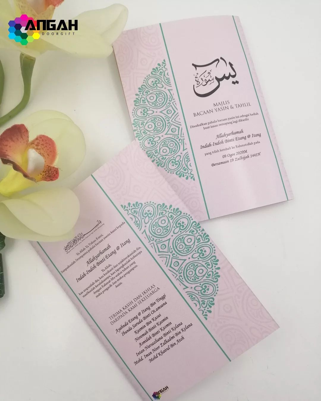 Untuk memperingati pemergiaan insan TERSAYANG. NASKAH yasin di jadikan hadiah/WAQAF/Sedekah buat tetamu yang hadir di MAJLIS TAHLIL. Moga dapat manfaat dari hadiah yang Di beri. ❤️