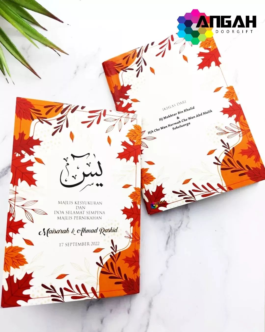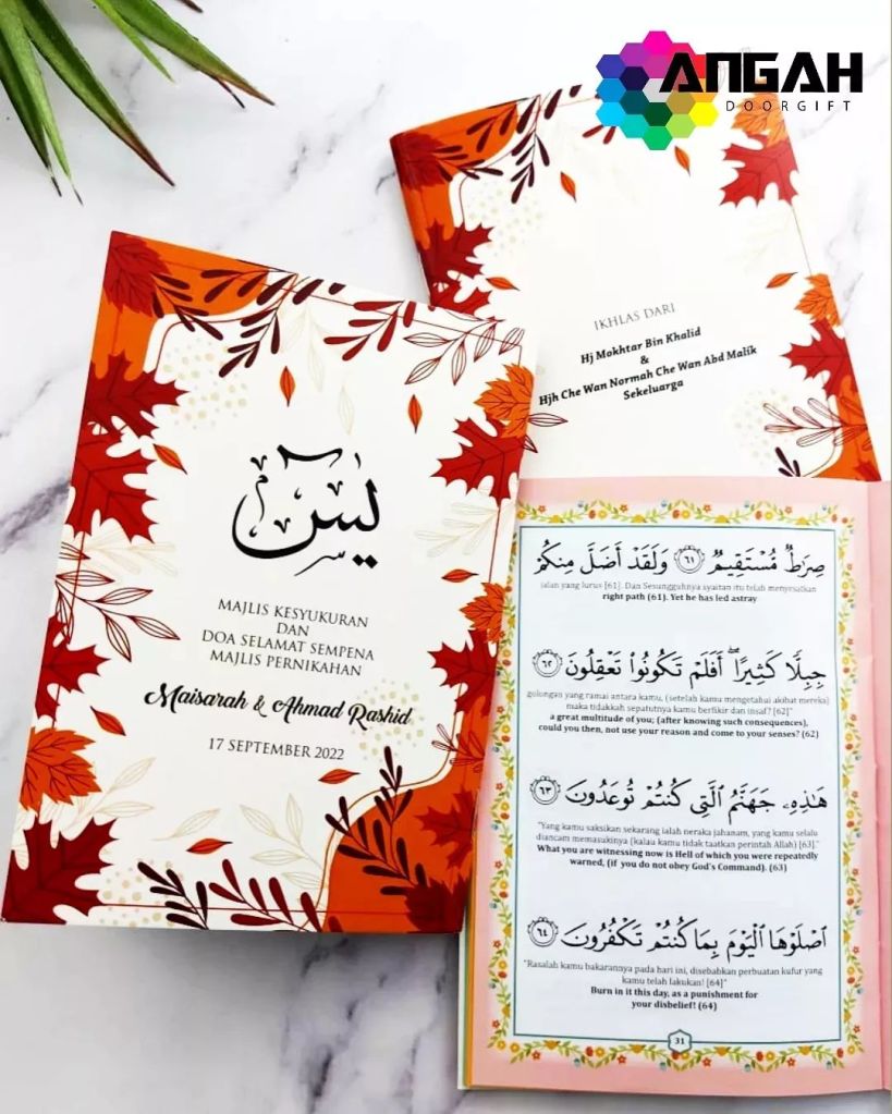 Majlis pernikahan & Kesyukuran di serikan dengan hadiah buku yasin custom cover untuk tetamu yang hadir.