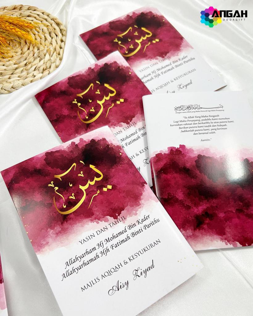 Ada banyak pilihan design yang anda boleh pilih selain daripada design ini. Yang penting mudah dibawa kemana-mana. Bagi anda yang meminati untuk menghasilkan yasin custom cover ini boleh hubungi kami sekarang.