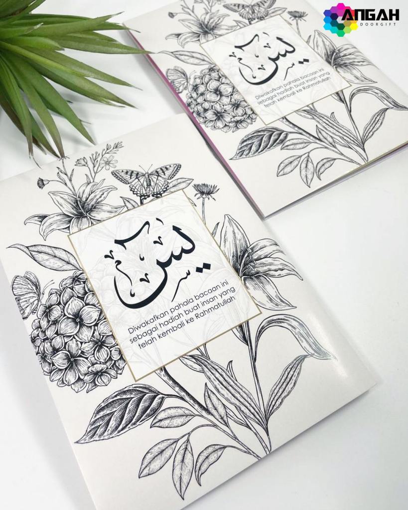 Kelebihan buku yasin custom cover kami terdapat lebih 600 design yang boleh anda pilih, isi kandungan buku yasin jelas, mudah untuk golongan yang berumur, buku yasin custom cover kami boleh tulis nama,tarikh mengikut wording pilihan anda dan mudah dibawa kemana-mana, terima kasih kerana memberi kepercayaan dengan hasil kerja kami, semoga arwah berada di kalangan orang yang soleh.