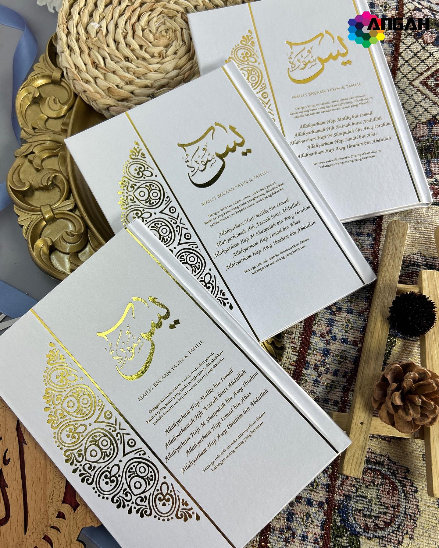 Yang macam pelanggan kami tempah ini adalah yasin jenis Hardcover, sangat cantik buku yasin custom cover ini dengan gabungan hardcover putih dan juga Hot Stamping gold, nampak sangat premiumkan.
