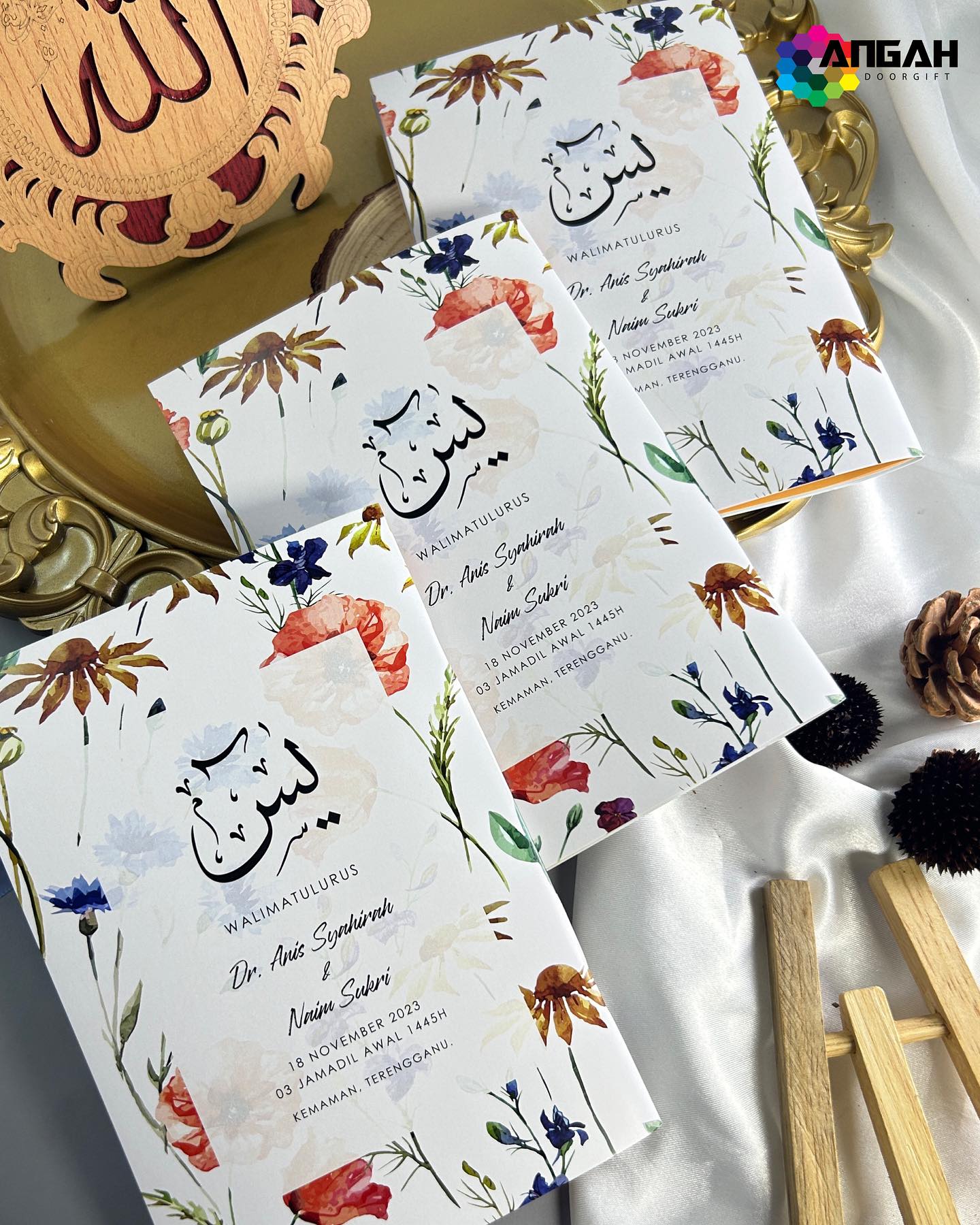 Tahniahh…. Selamat penggantin baru, semoga rumah tangga yang baru di bina ini berbahagia dan kekal hingga ke syurga, cantikkan buku yasin custom cover ini dengan pemilihan design bunga-bunga sangat menyerlah, pandai pasangan ini membuat pilihan untuk majlis istimewa mereka.