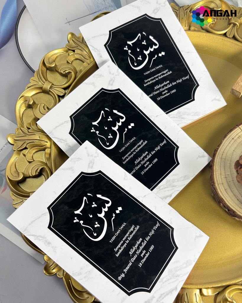 Teringatkan arwah yang telah pergi buat selamanya? Keistimewaan buku yasin custom kami adalah boleh tulis nama arwah. insyaAllah dengan cara ni kita dapat panjangkan lagi pahala untuk arwah dan lebih ramai yang mendoakannya. Yasin softcover ini mempunyai tiga jenis saiz seperti medium, big dan A5. Bagi pelanggan yang meminati isi kandungan beserta dengan surah-surah pilihan boleh pilih saiz yasin A5.