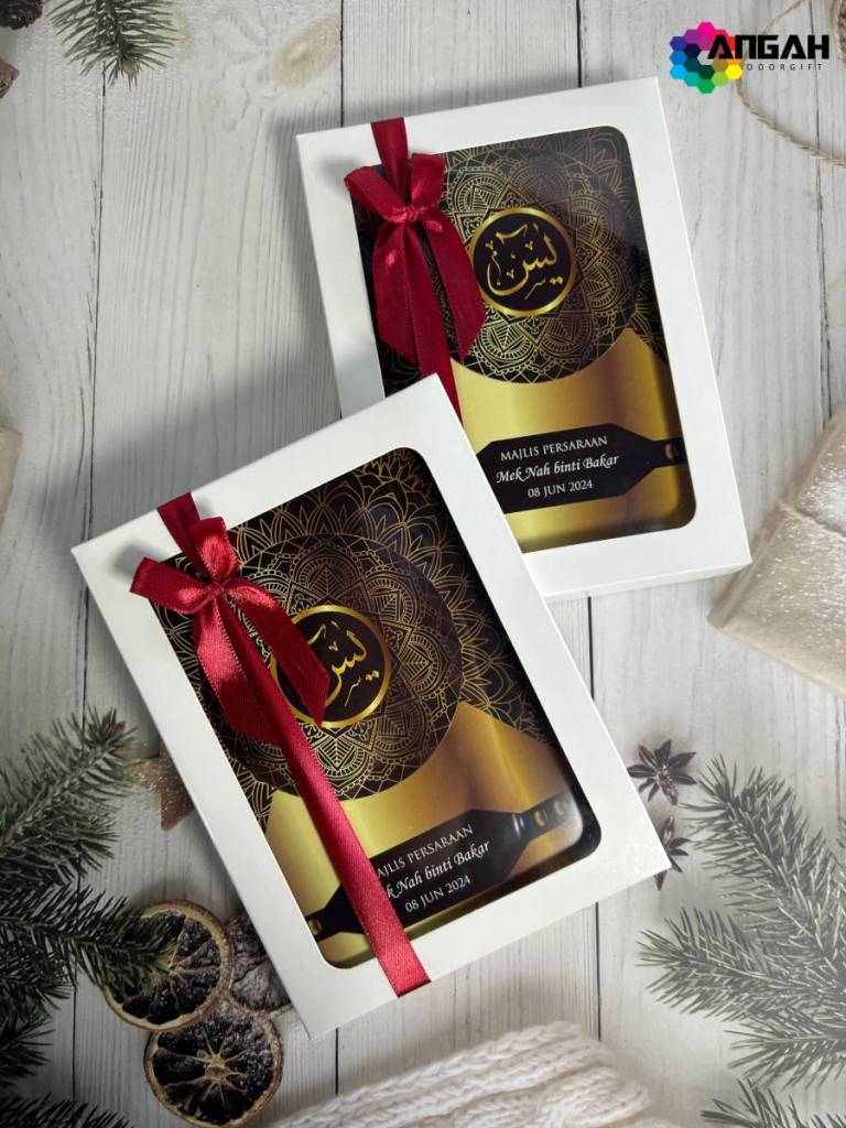 Buku yasin custom cover ini bukan sahaja untuk majlis tahlil bahkan sesuai juga dijadikan sebagai hadiah buat kenalan anda yang sudah bersara dan pelbagai jenis majlis lagi, buku yasin custom made ini sangat banyak manfaatnya, jenis pelanggan kami tempah ini adalah set yasin + kotak dan ribbon, anda boleh pilih design mengikut citarasa anda sendiri.
