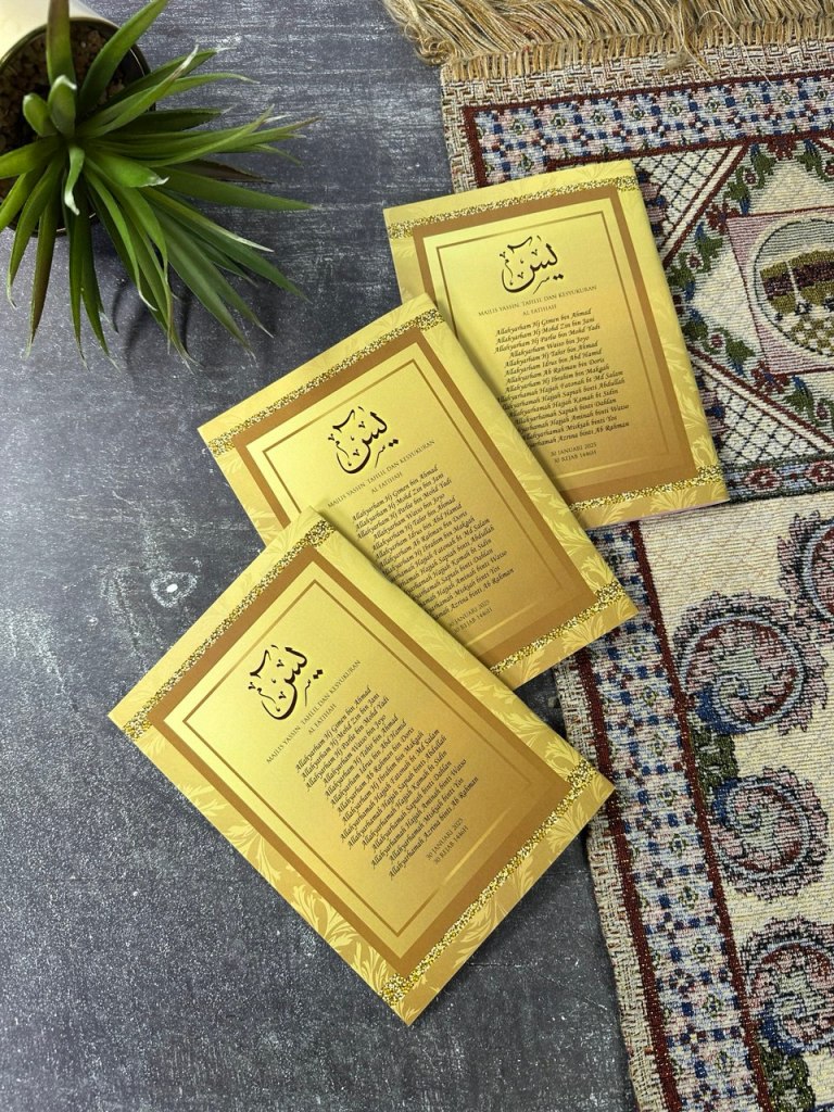 Dapatkan Buku Yasin kami sekarang dan jadikan setiap doa lebih bermakna. Jom mulakan tempahan doorgift Yasin anda sekarang, sebelum terlambat!