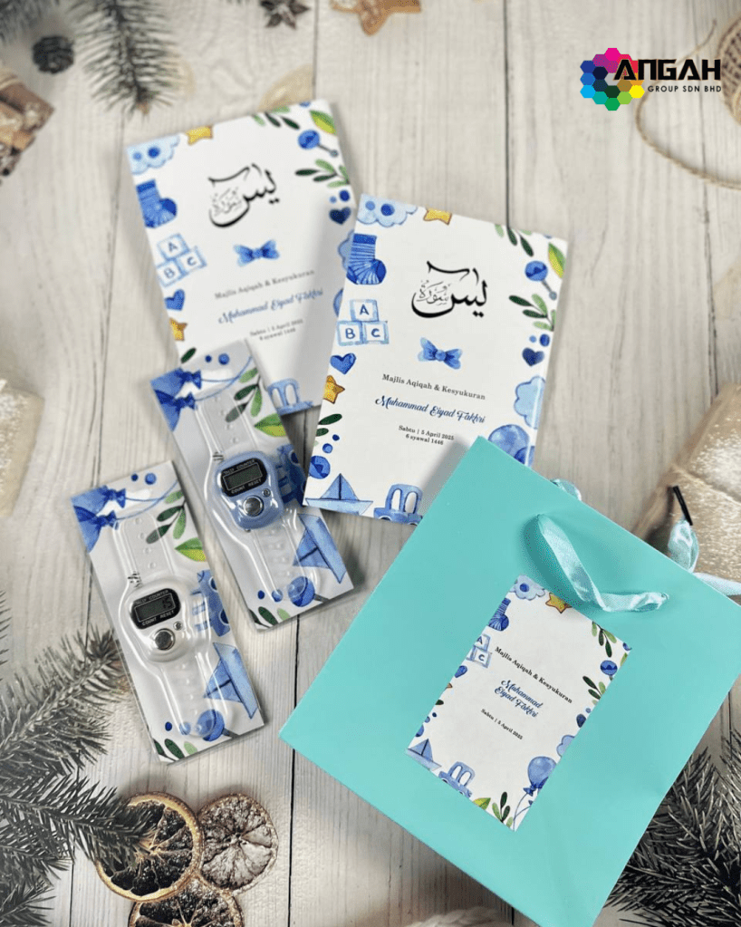 Set Tasbih Digital, Buku Yasin, dan Paperbag adalah kombinasi sempurna untuk menghiasi hari majlis anda. Set ini dapat manfaat di rumah atau dibawa ke masjid bagi mempermudah ibadah.