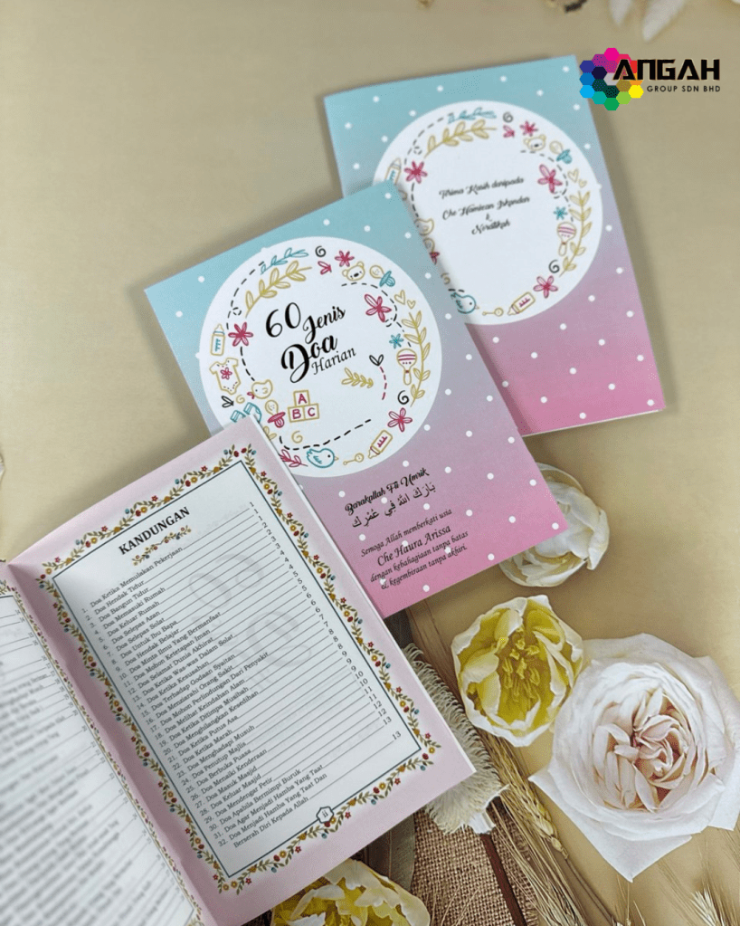 Jangan lepaskan peluang untuk memberikan doorgift penuh keberkatan ini. Dapatkan buku “60 Doa” dengan nama anak hari ini dan jadikan ia sebagai hadiah yang tidak ternilai.