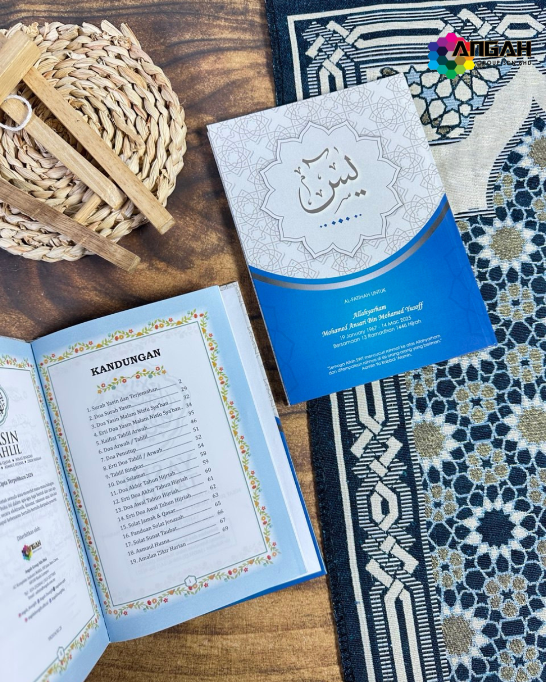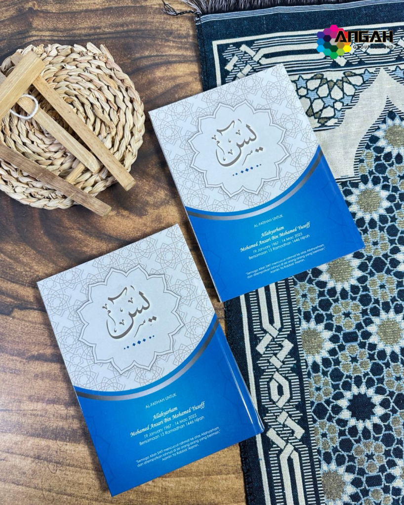 Nak doorgift yang cantik dan bermakna? Buku Yasin softcover custom made ni memang pilihan terbaik! Boleh letak nama, ucapan khas atau tarikh kenangan sesuai untuk rumah terbuka, kenduri atau majlis tahlil.