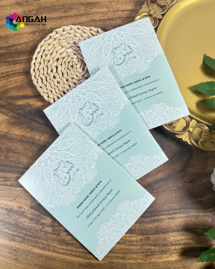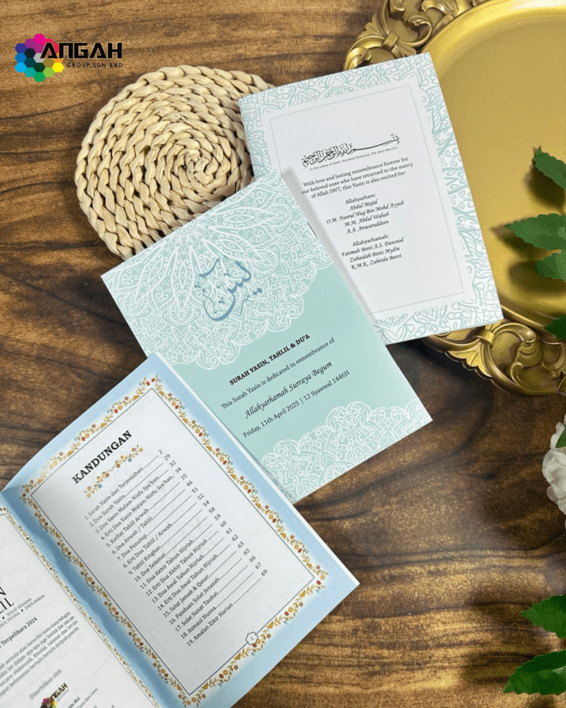 Direka kemas dengan material berkualiti, sesuai untuk majlis tahlil, kenduri arwah atau sebagai wakaf. Setiap naskhah bukan sekadar bacaan, tapi kenangan yang boleh disimpan selamanya.