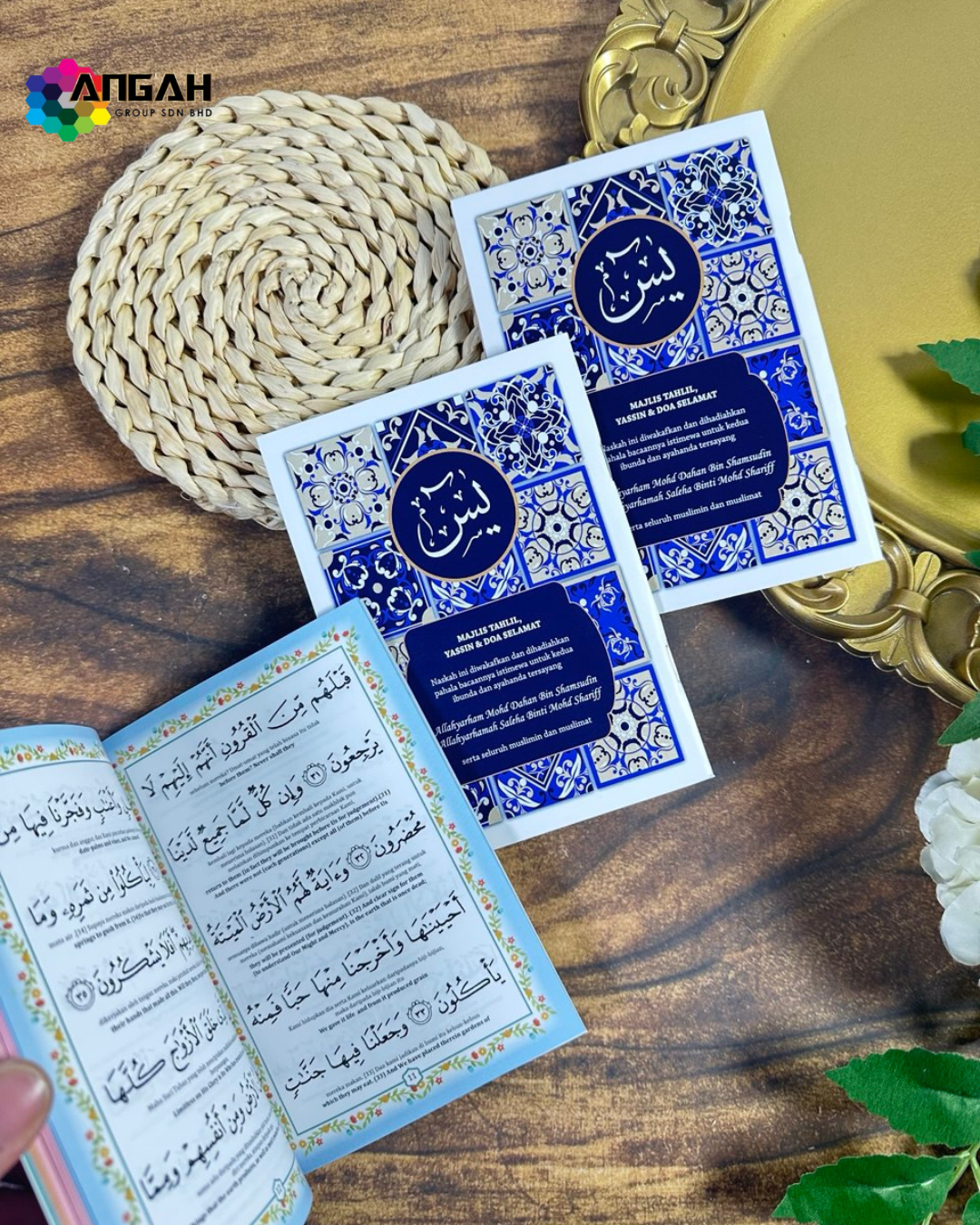 Tempah sekarang untuk jadikan Yasin Custom sebagai hadiah rohani dalam majlis anda. Beri manfaat, dan tinggalkan pahala berpanjangan!
