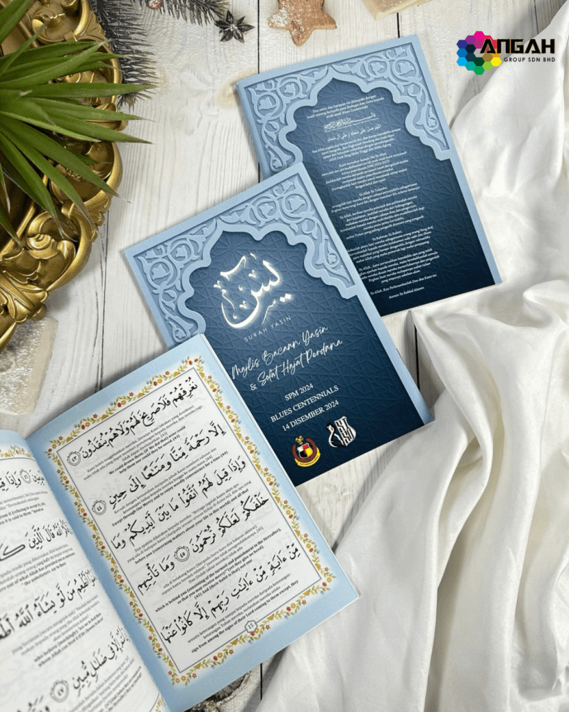 Jangan lepaskan peluang untuk menyerikan majlis anda. Tempahlah Buku Yasin custom hari ini dan raikan keberkatan bersama!