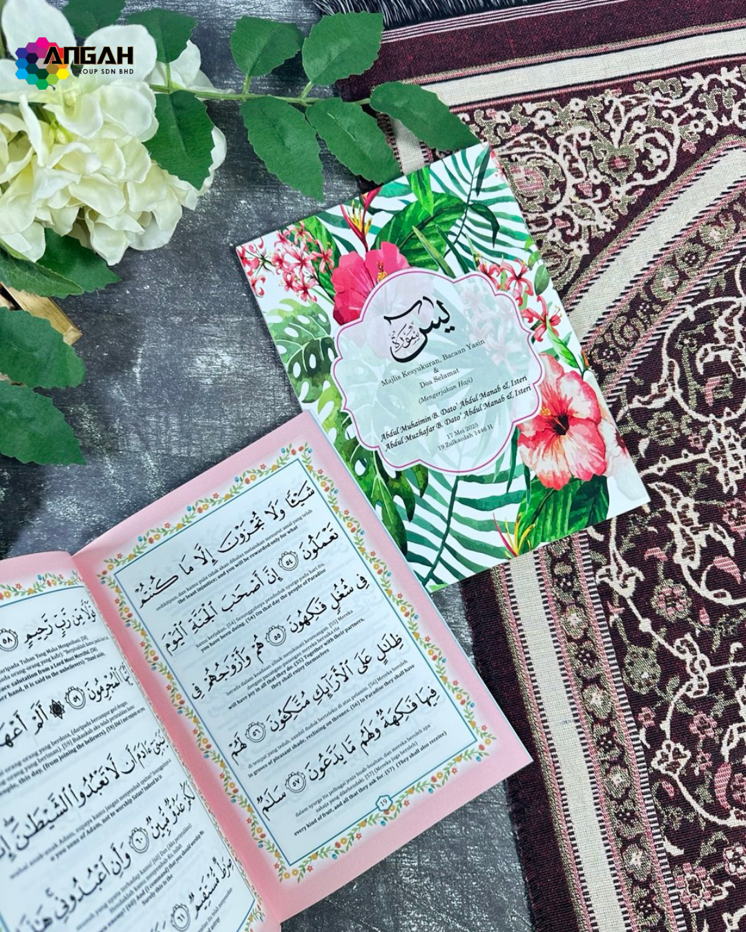 Jadikan majlis anda lebih bermakna di bulan yang berkat dengan buku Yasin ini. Tempahan dibuka, hubungi customer service untuk maklumat lanjut.