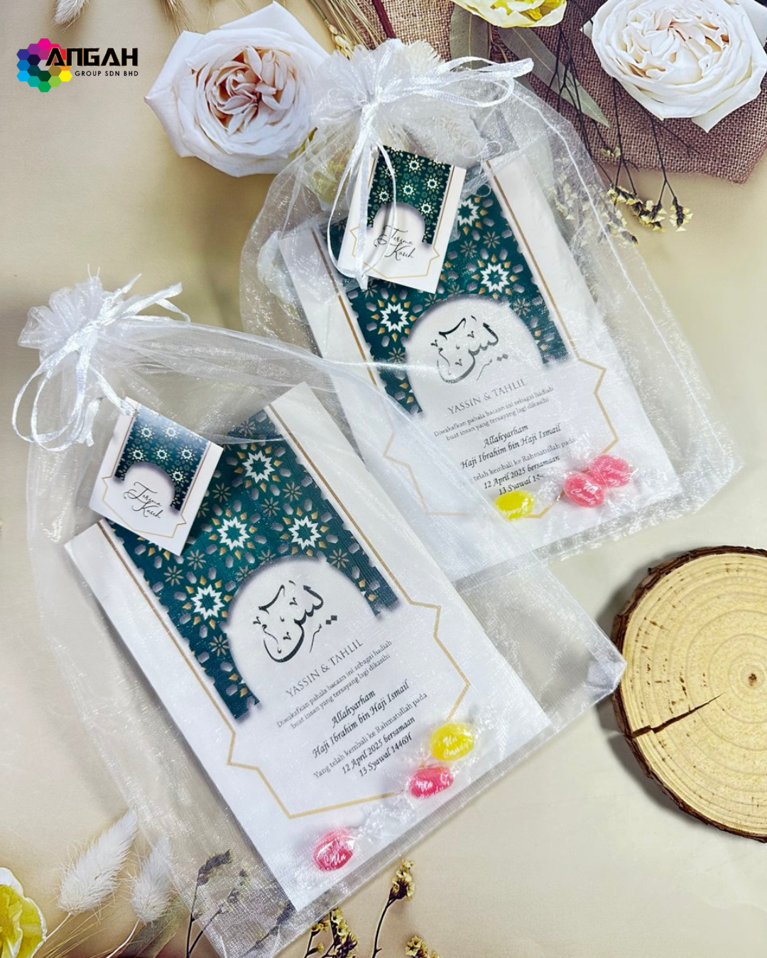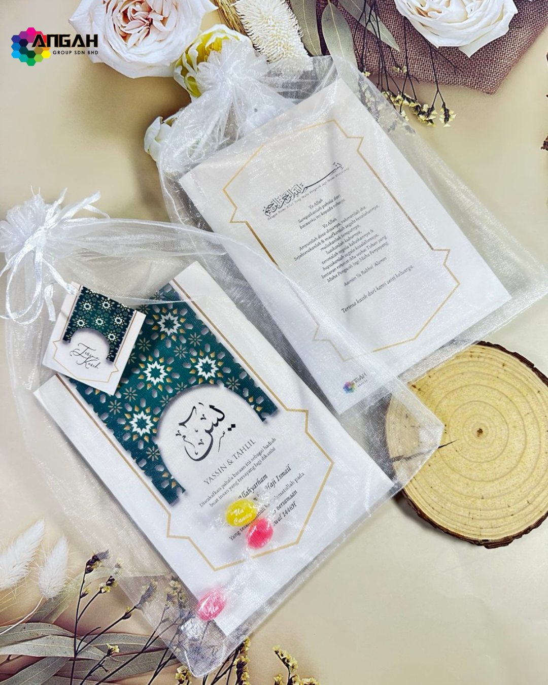 Buku Yasin bersama beg organza ialah pilihan cenderahati yang eksklusif dan bermakna untuk majlis seperti tahlil, doa selamat, kenduri arwah atau perkahwinan. Ia bukan sahaja cantik dipandang, malah penuh nilai rohani.