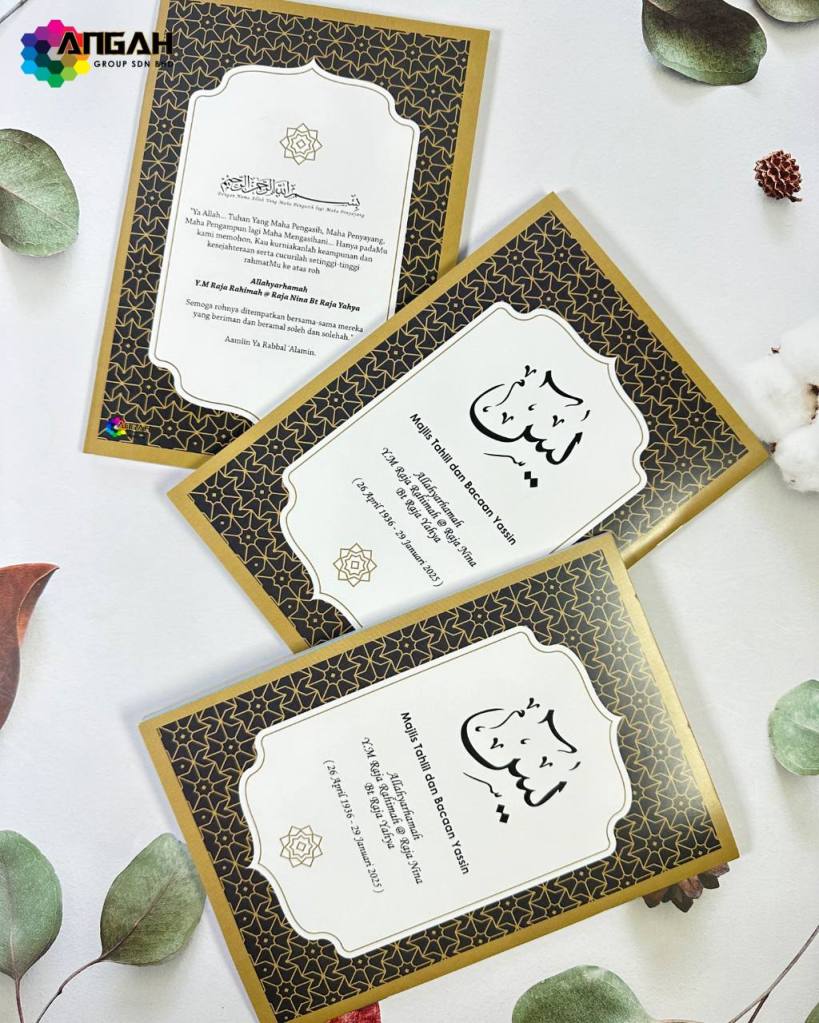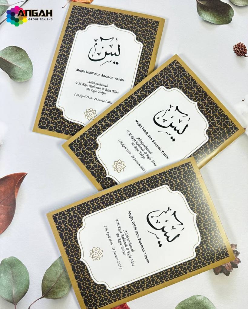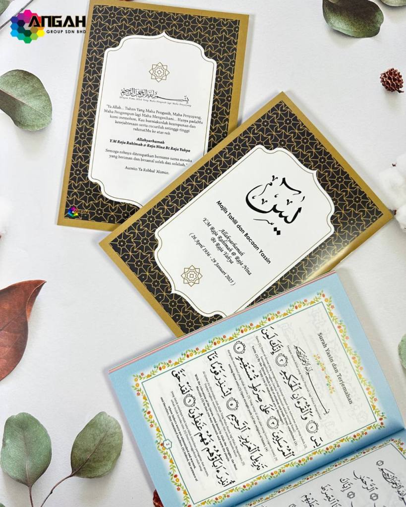 Ingin tempah buku Yasin yang eksklusif untuk majlis tahlil anda? Hubungi kami sekarang untuk reka bentuk istimewa yang menyentuh hati dan penuh makna.