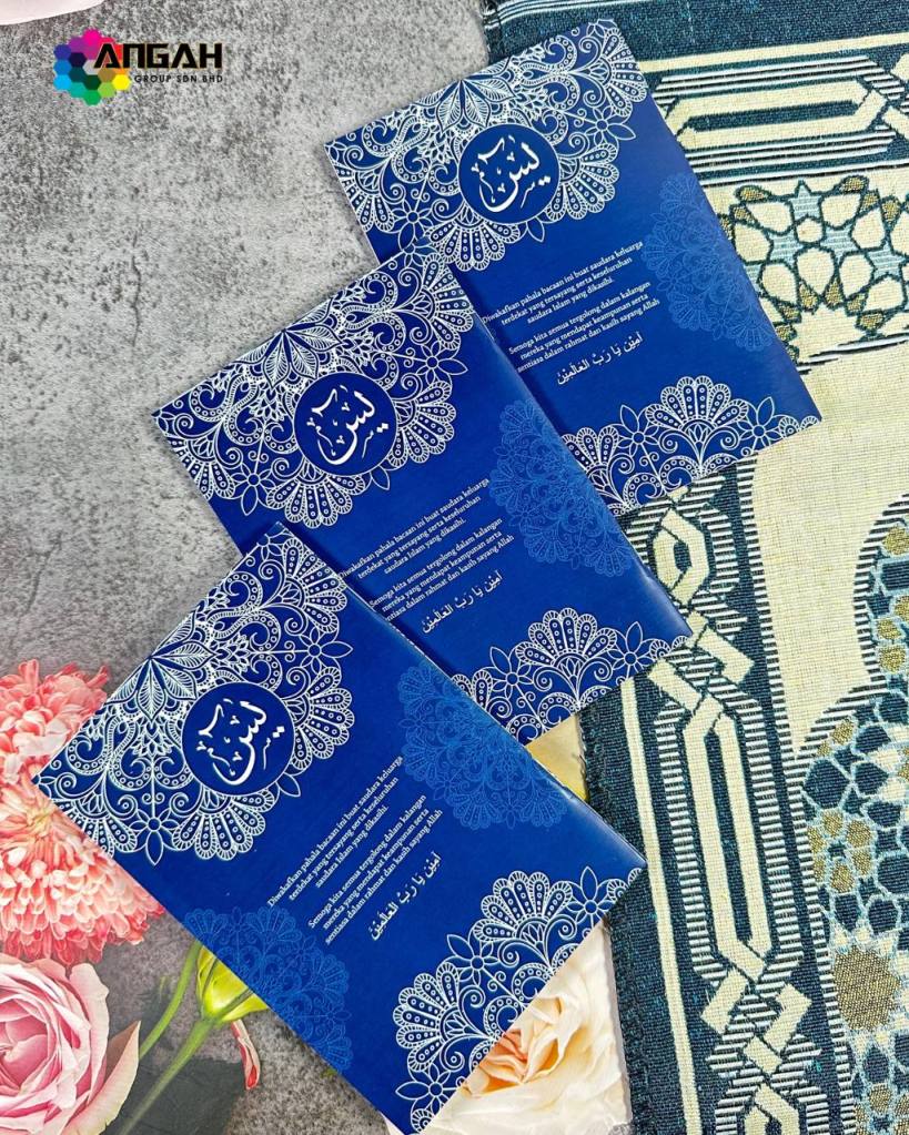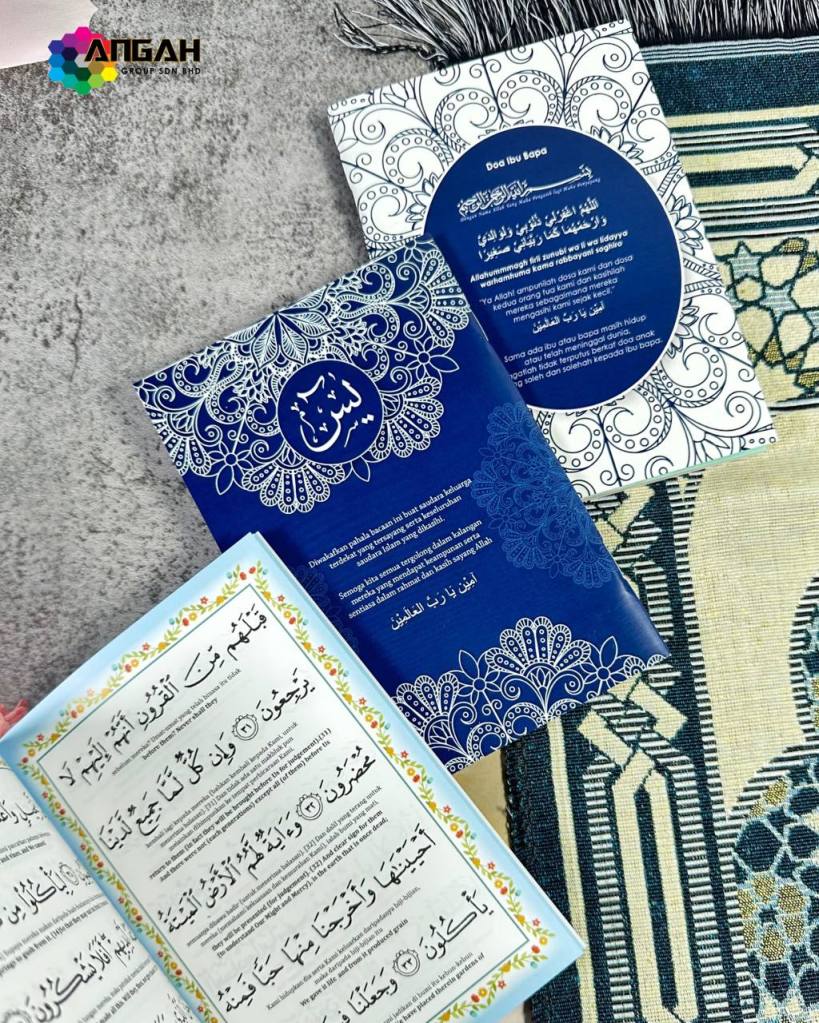 Tempah buku Yasin custom untuk sedekah jariah hari ini. Boleh letak nama arwah dan pilih design. Hubungi kami untuk buat tempahan di talian 0133377005.
