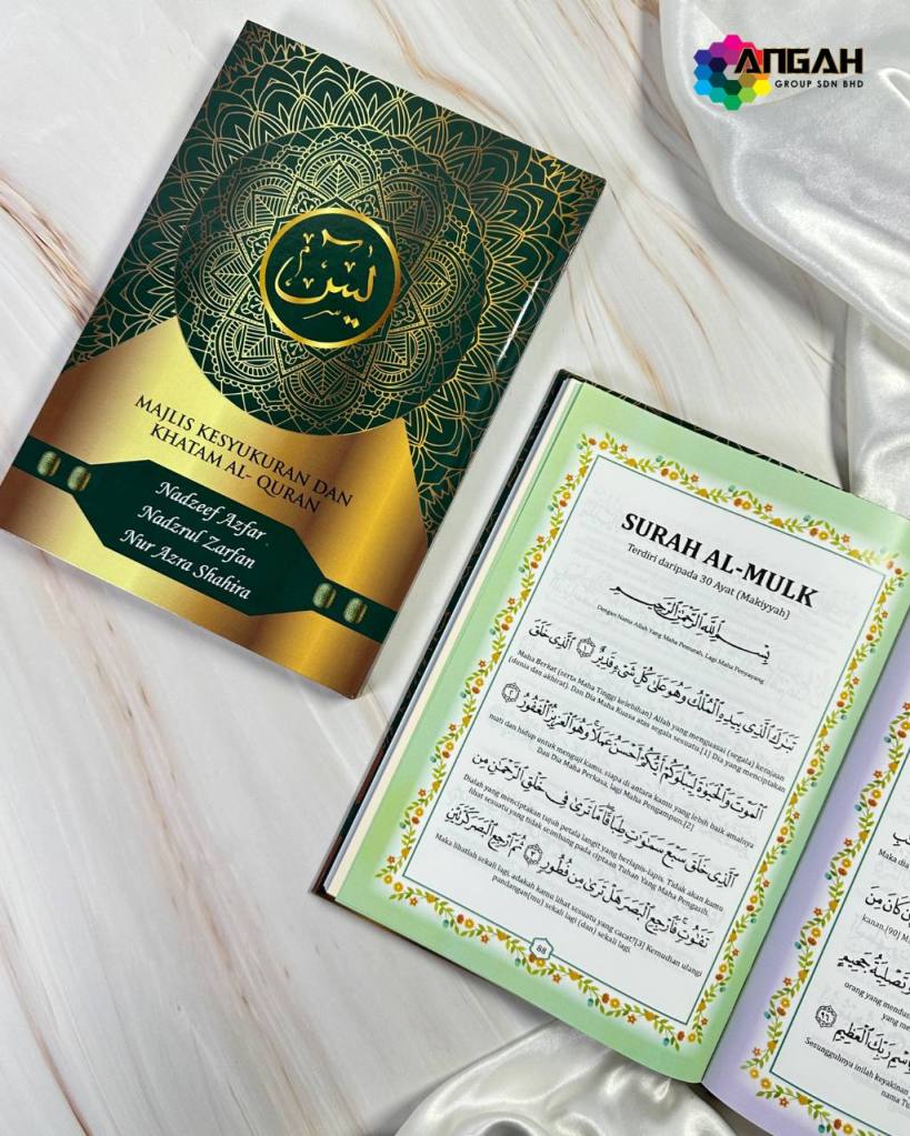 Raikan hari bermakna dengan hadiah yang memberi pahala berterusan. Tempah Buku Yasin khas mengikut tema majlis anda hari ini! Untuk tempahan boleh hubungi 0198340041.