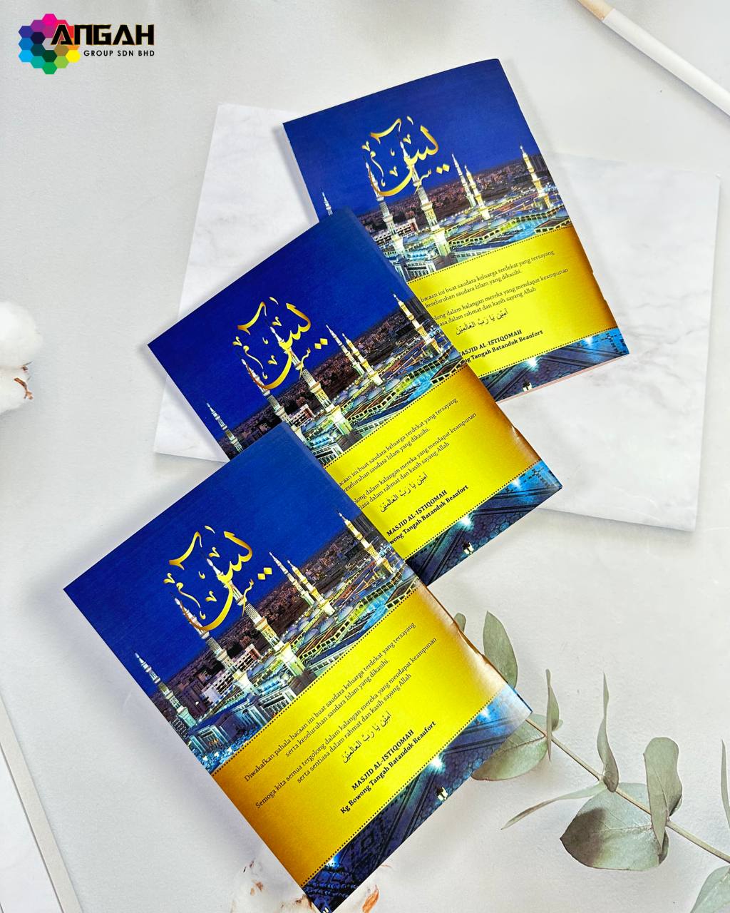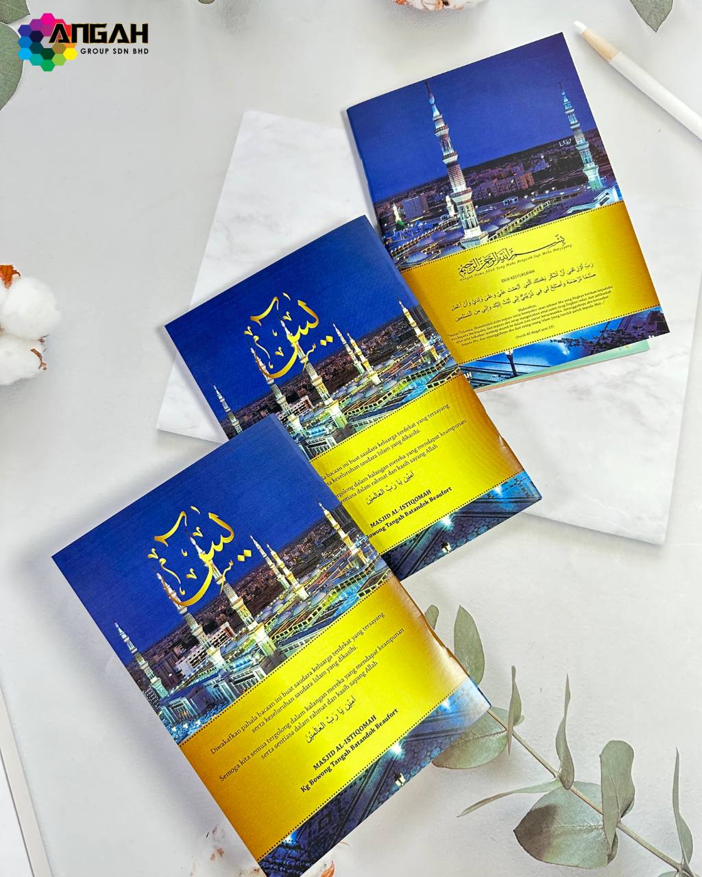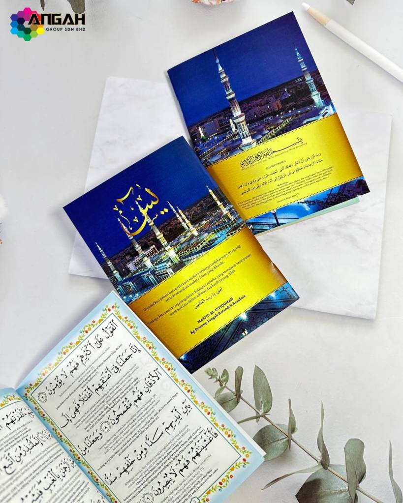 Bayangkan nama anda atau orang tersayang terpahat pada buku Yasin di masjid. Setiap doa dan bacaan jemaah menjadi doa yang mengiringi anda.