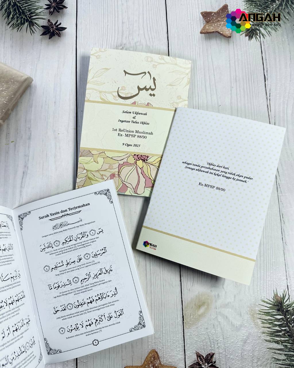 Buku Yasin untuk majlis reunion adalah cenderahati bermakna yang mengikat ukhuwah dan menjadi kenangan rohani sepanjang masa.