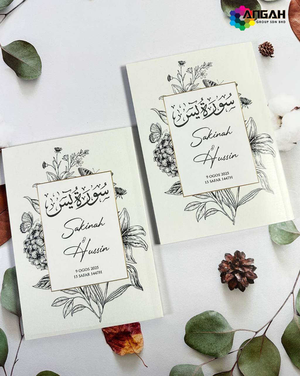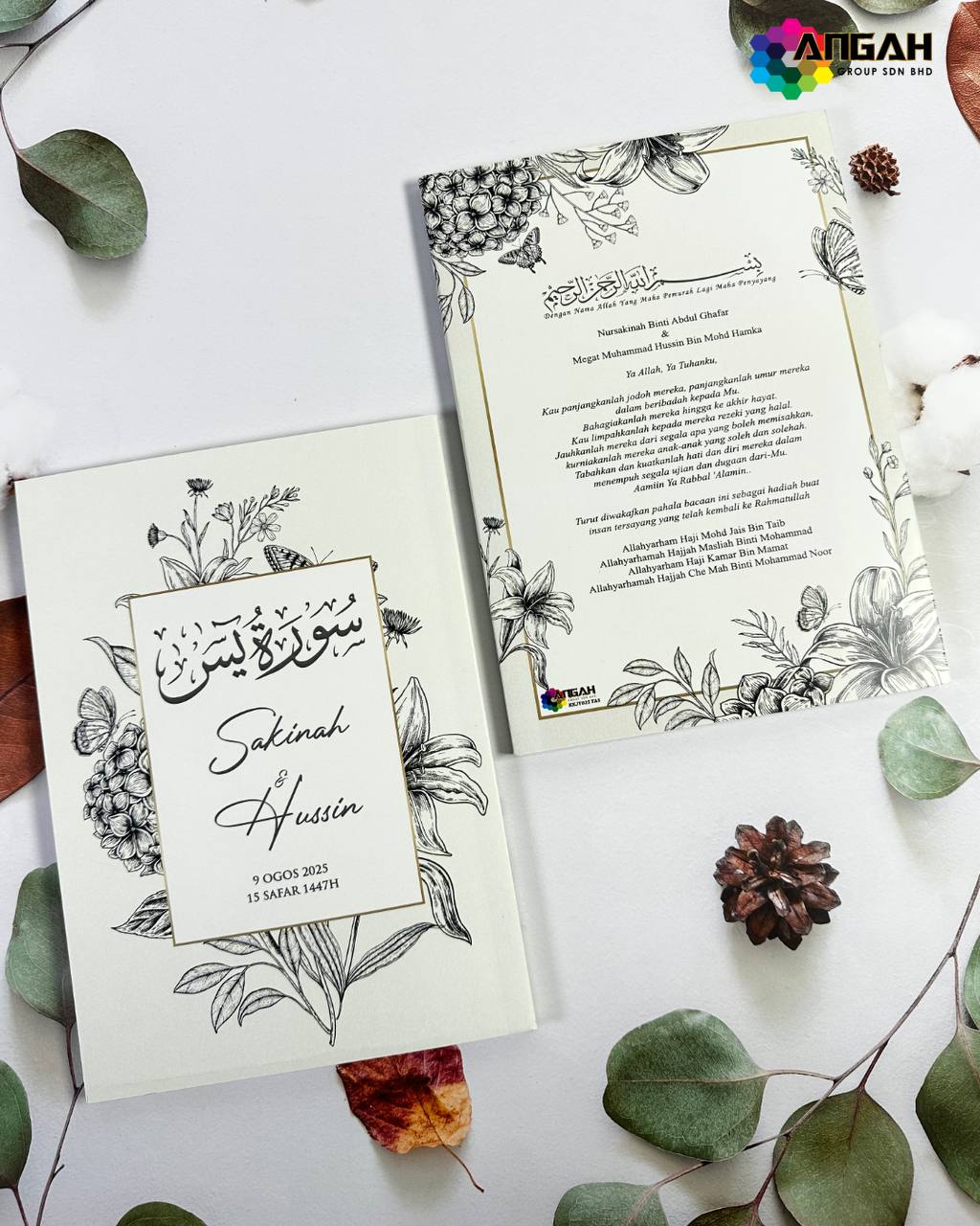 Buku Yasin khas majlis perkahwinan ini bukan sekadar cenderahati, tetapi tanda kasih dan doa agar rumahtangga pengantin sentiasa diberkati. Direka eksklusif dengan sentuhan elegan, ia menjadi kenangan bermakna untuk para tetamu.
