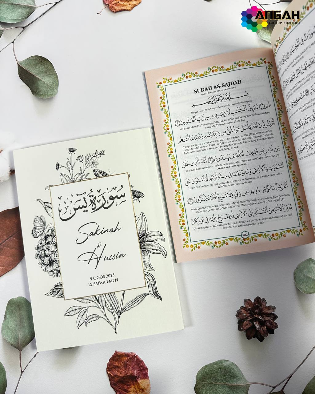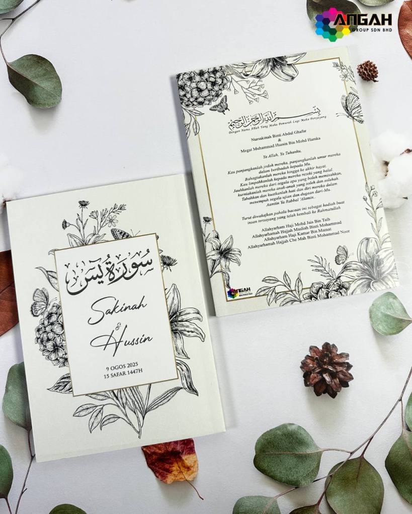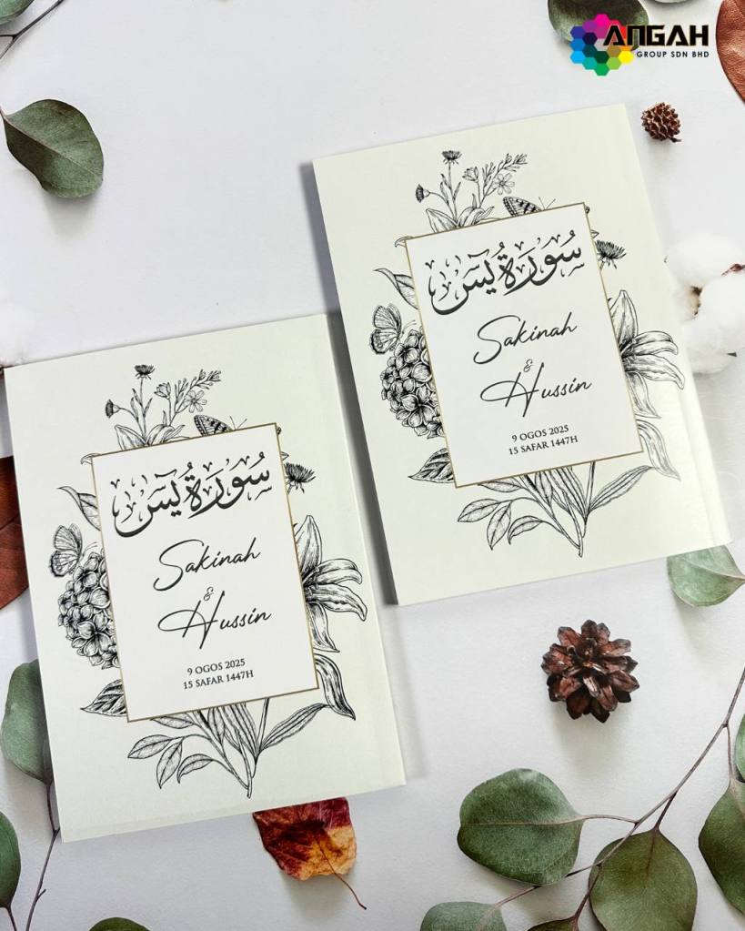 Cetakan jelas, rekaan cover boleh disesuaikan dengan nama dan tema majlis, menjadikannya hadiah penuh nilai dan pahala berterusan. Berbeza daripada cenderahati biasa, ia memberi manfaat dunia dan akhirat.