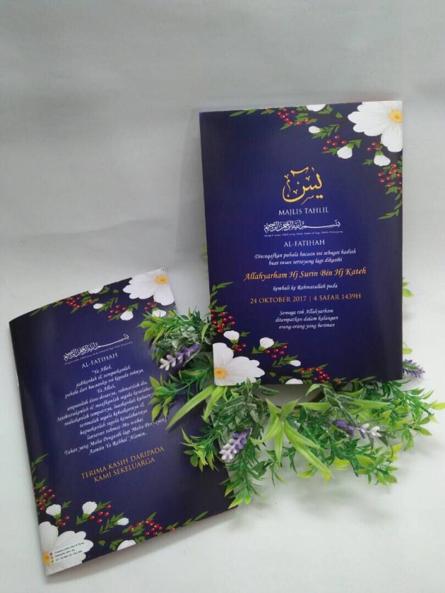 Terima kasih kerana membuat tempahan buku yasin/doa di tempahanyassin. Kami doakan majlis anda berjalan lancar dan rezeki anda dipermudahkan oleh NYA.Semoga doorgift buku yasin ini memberi manafaat kepada sesiapa yang membacanya.