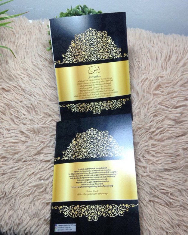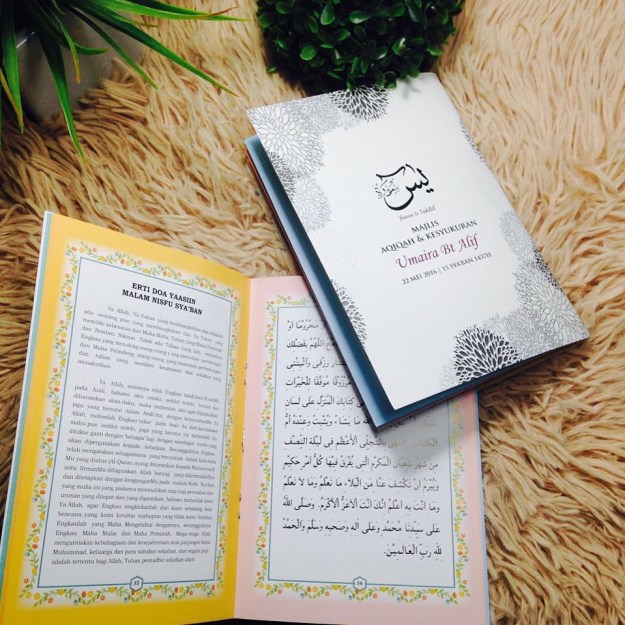 Terima kasih kerana membuat tempahan buku yasin/doa di tempahanyassin. Kami doakan majlis anda berjalan lancar dan rezeki anda dipermudahkan oleh NYA.Semoga doorgift buku ini memberi manafaat kepada sesiapa yang membacanya.
