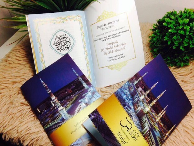 Alhamdulilah, tempahan yassin sempat untuk update blog tempahan yasin kami. Terima kasih kpd pelanggan kami yang sudi menempah buku yasin dengan kami, Anda boleh whtapps tempahan yassin, no tel ada di sebelah kanan blog ni or dtg ke kedai kami alamat kedai tempahan yassin, stiker dan tq tag ada di sebelah kanan blog ni ya.