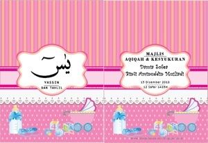 Untuk tempahan yassin, doorgift aqiqah, tempahan buku doa, tempahan stiker boleh whatsapp sy di 0126345952 or pm di facebook pages d sebelah kanan ni.. Kami sedia membantu anda 🙂